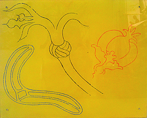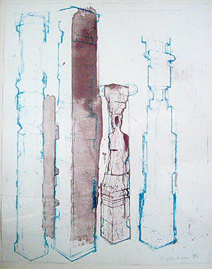 Ohne Titel | Moosgummi-Monotypie und Ölkreide auf Halbkarton | 2008 | 14.8 x 21 cm | Isabel Griffiths