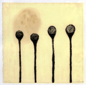 Was blüht mir? | Kaltnadel | 2004 | 3 x 15 x 15 cm | dreiteilig | Kathrin Schär