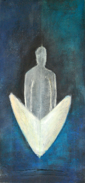 Reisender zwischen in der Zeit | Wasserfarbe auf Leinwand | 1986 | 40 x 90 cm | Petra Feliser