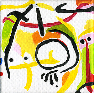 Freude | Druckfarbe und Acryl auf grundierter Leinwand | 2008 | 15 x 15 cm | Stéphanie Hechenberger