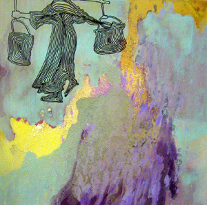 Gartenmeister, Elementar und Wasserträger | Mischtechnik auf Holz | 2007 | Triptychon, 3 Bilder à je 40 x 40 cm | Jacinta Candinas